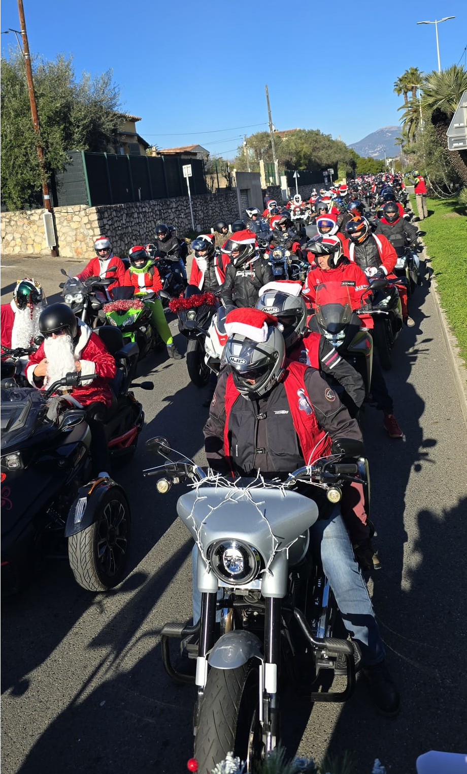 C'est le dimanche 14 décembre 2025 que s’est déroulée la balade de noël organisée par les bénévoles de la FFMC 06, qui a réuni environ 500 motos à divers moments et encore plus de participants.